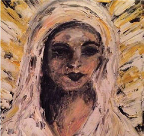 This is a 14 x 11 acrylic painting on canvas, created with brush and palette knife. This painting too, was inspired by our recent trip to The Vatican, and I painted it in the very early morning hours when I could not sleep, by a very dim light, in about 30 minutes…….I felt a but like Michelangelo painting by candlelight while creating this. It is a painting of Mary of course, but I titled it “From the Heart”, due to the quick amount of time I painted her in…….I happen to really love the painting, and only something completely from the heart can flow so effortlessly, I figure.